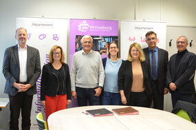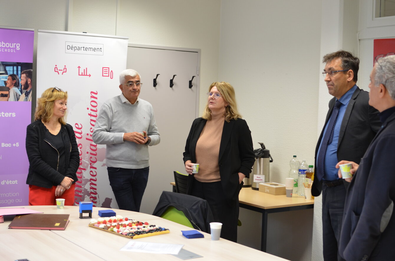 Laurence Viale, enseignante à l'EM Strasbourg, Karine Meyer-Welsch, Cheffe du Département TC, Malik Bouacida et Martial Libéra, tous deux enseignants à l'IUT ont également assisté à cette signature de convention dans les locaux de l'IUT.