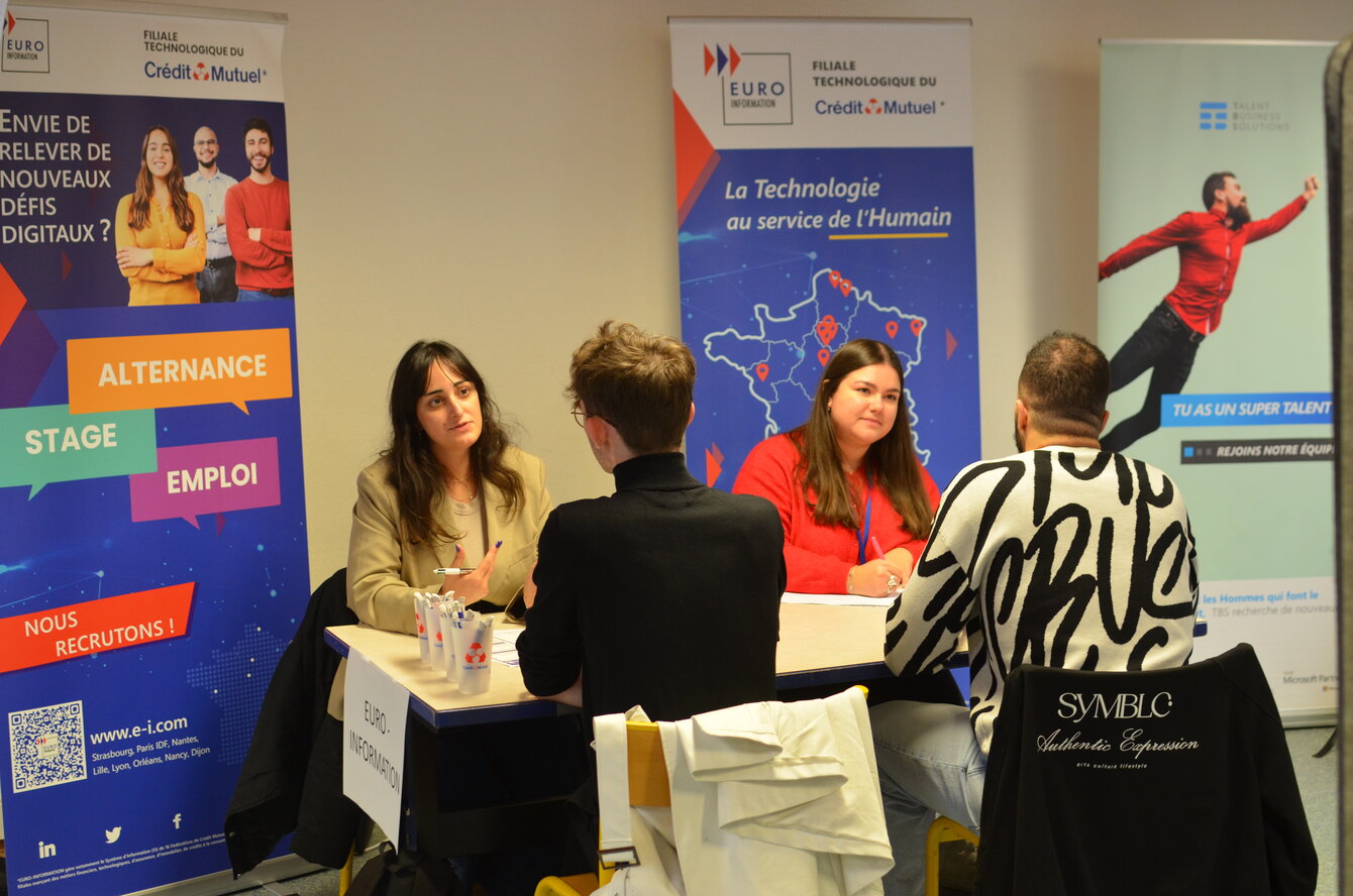 Le Département Informatique a accueilli 8 entreprises lors de son forum "entreprises-étudiants". Les étudiants en 2e année du B.U.T. Informatique ont eu l'opportunité de passer des entretiens d'embauche pour un éventuel recrutement en stage ou en alternance.