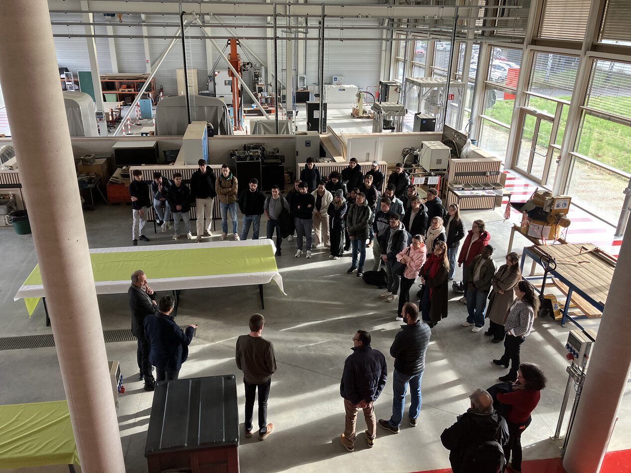 Cette rencontre a eu lieu dans notre hall de technologie de Génie civil, en présence de Manuel Lapoirie, directeur du Site Mulhouse EDF, de Robert Mosé, directeur de l'IUT, de Rémi Chene, technicien chez EDF et de Mounir Skah, actuellement tuteur de notre étudiant alternant chez EDF.