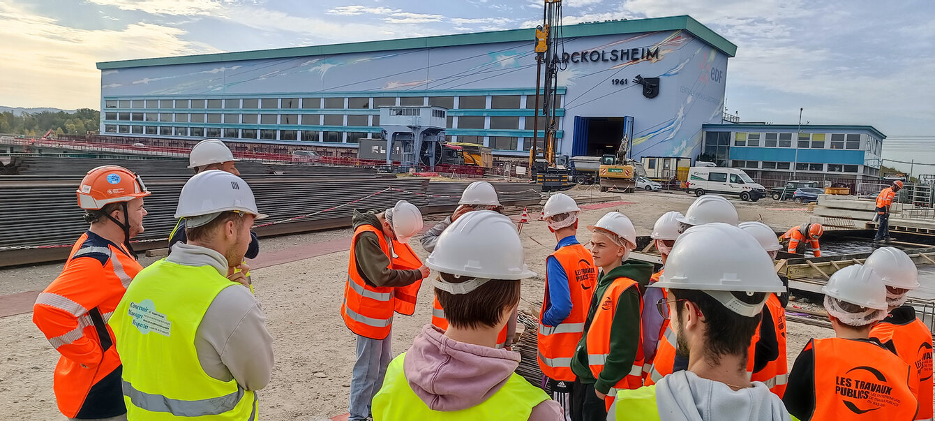 Les étudiant·es ont accueilli sur plusieurs chantiers des lycéen·nes et collégien·nes de l'Académie de Strasbourg pour leur montrer les métiers du BTP et partager avec eux leur passion du métier.