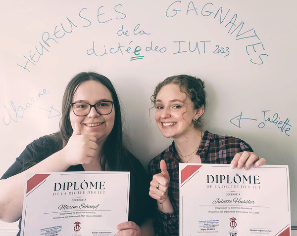 Parce qu'être de bonnes communicantes commence aussi par là... Félicitations à Juliette Hussler et Marine Schimpf, étudiantes en B.U.T Information-Communication, heureuses gagnantes de la Dictée des IUT édition 2022-2023 !