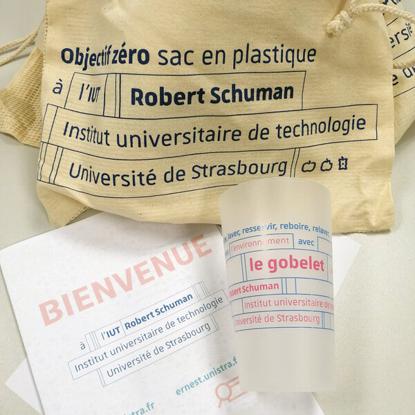 Lors de cette rentrée universitaire 2022, l'IUT a distribué à l'ensemble de ses personnels enseignants, administratifs, techniques et de ses étudiant·es, un kit éco-responsable.