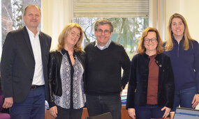 Pour renforcer notre partenariat avec le groupe Auchan et développer le parcours Marketing et Management du point de vente (MMPV), label Distrisup l'un des 4 parcours proposés par le B.U.T. Techniques de commercialisation (TC), Robert Mosé, directeur de l'IUT, Karine Meyer-Welsch, cheffe du département TC et Anne Hirth, responsable du parcours et de l'alternance en MMPV, ont accueilli dernièrement Patrick Peysson, responsable Alternance et Marie Delahaye, responsable Recrutement & Relations Écoles.