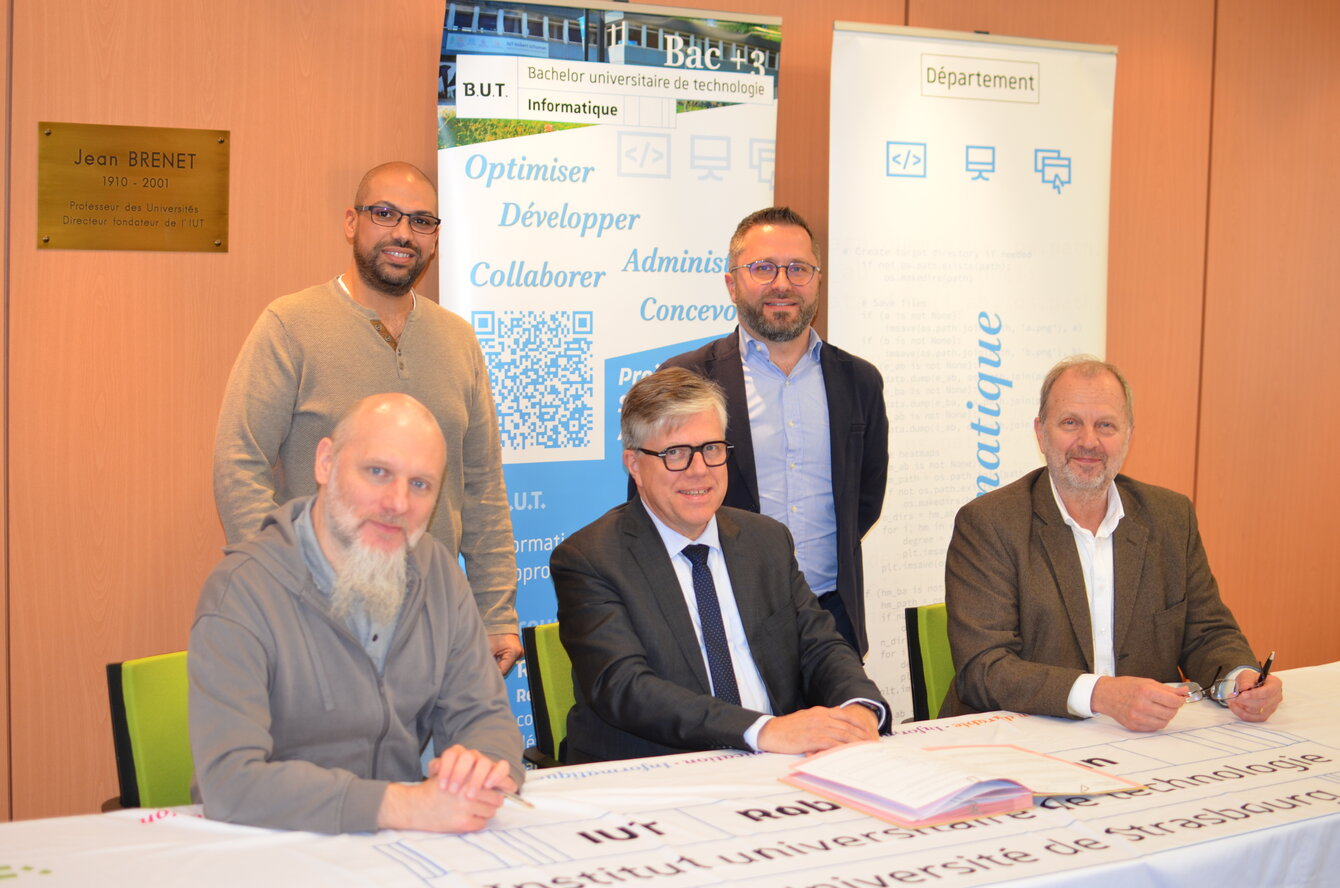 Cette rencontre a eu lieu dans nos locaux, en présence de Eric Sauvage, Directeur de la DiSI Grand Est, de Robert Mosé, Directeur de l'IUT, de Mathieu Zimmermann, Chef du département Informatique de l'IUT, de Vincent Raulet responsable communication à la DGFiP et de Ali Ayadi enseignant et référent entreprise au sein du département Informatique de l'IUT.