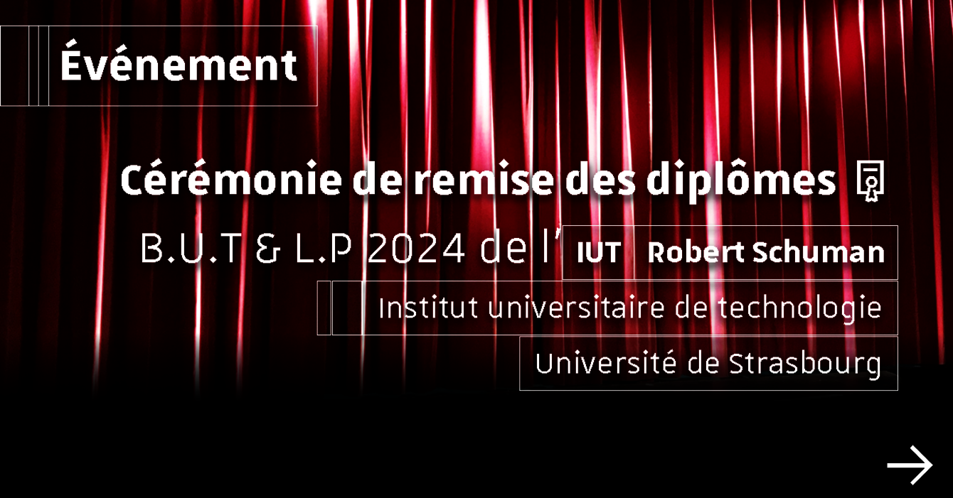 Diplômé·es de la promotion 2024 de l'IUT Robert Schuman, les inscriptions pour votre remise des diplômes sont ouvertes !