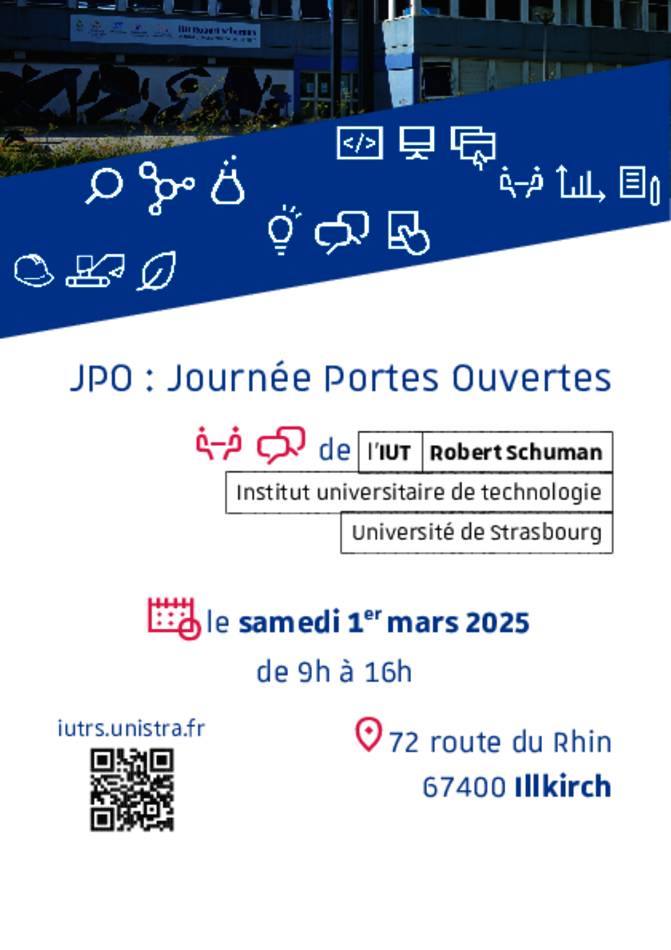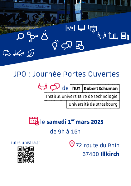 Plus de 350 étudiant·es, enseignant·es et personnels administratifs seront présent·es pour vous renseigner, vous guider, vous faire découvrir l’IUT Robert Schuman et ses formations.