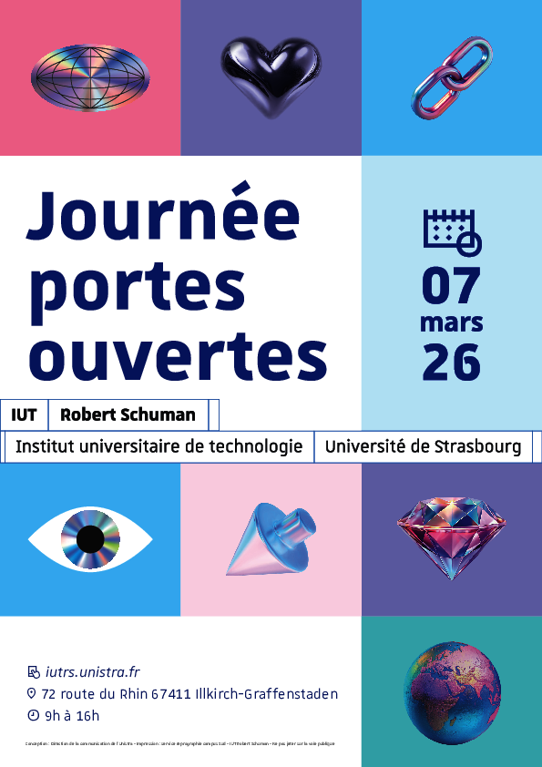 Plus de 350 étudiant·es, enseignant·es et personnels administratifs seront présent·es pour vous renseigner, vous guider, vous faire découvrir l’IUT Robert Schuman et ses formations.