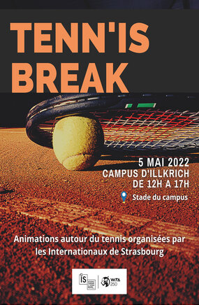 Jeudi 5 mai, sur le campus d’Illkirch aura lieu l’activité « Tenn’IS Break » organisé par les Internationaux de Strasbourg, le premier tournoi de tennis féminin français !